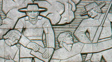 The monument's design was the brainchild of architect Alfred C. Finn and engineer Robert J. Cummins, both Houstonians. Construction ran from 1936 to 1939. Its builder was the W. S. Bellows Construction Co. of Dallas and Houston. The impressive structure alone — apart from its historical significance — is worth a trip to San Jacinto Battleground. At 570 feet, this Texas giant is one of the finest examples of Moderne (Art Deco) architecture in the United States, and is recognized as a National Historic Civil Engineering Landmark by the American Society of Civil Engineers. The photos above give a glimpse of life at the worksite.